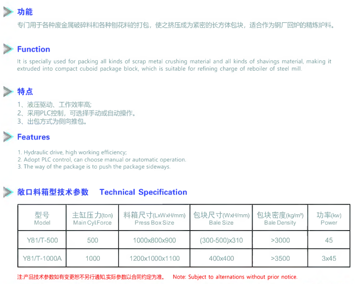 金属压缩打包机 Y81/T系列